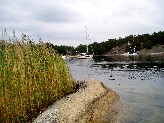 | Nefertiti för ankar i Stockholms skärgård. | För ankar vid Träskö Storö i Stockholms skärgård. Sen sommar 2003. | Nefertiti vid bryggan på våran klubbholme. | Biminitoppen (soltaket) testas för framtida bättre väder. |